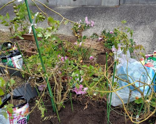 庭のミニトマトぷよが植えてある22リットルのプランターをブロッコリーに使いたいので 庭のきゅうりを植えていた場所に植え 替えることにした。 ようやく着果し始めたけど 赤くならない。 きっとこのまま枯れるだろうな。