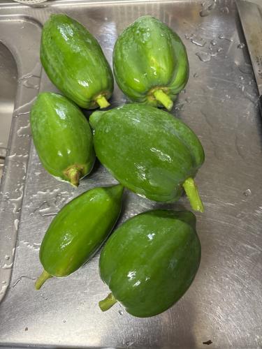 今日は寒いです。 冷房から暖房へ、エアコンも大変だわ。 そんな事で、急遽パパイヤを収穫しました。 月末までは成長するかも?と期待していましたが、こうも寒いと無理だわね。 小ぶりなパパイヤです。