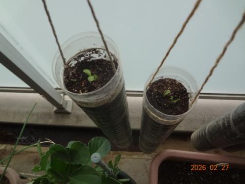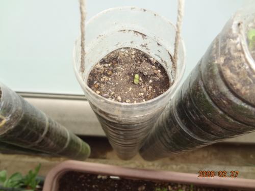 てがるごぼう、第2弾発芽しました。播種14日目でした。第1弾は播種21日目です。