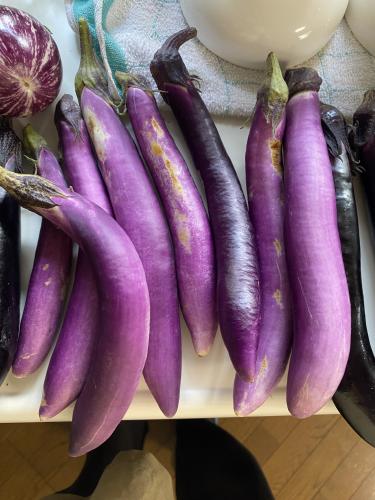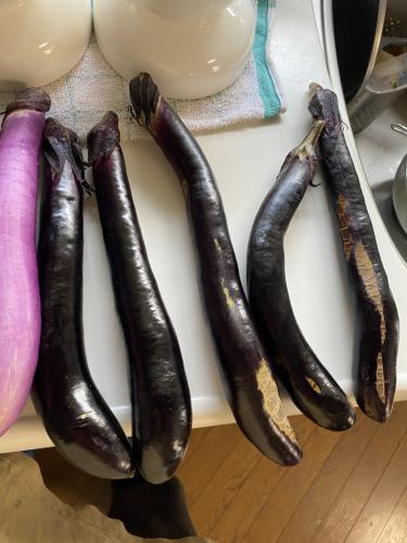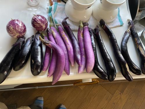 お茄子たち、色々と採れました♪ マー坊とカリオペ、ボケてる?よねw。