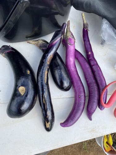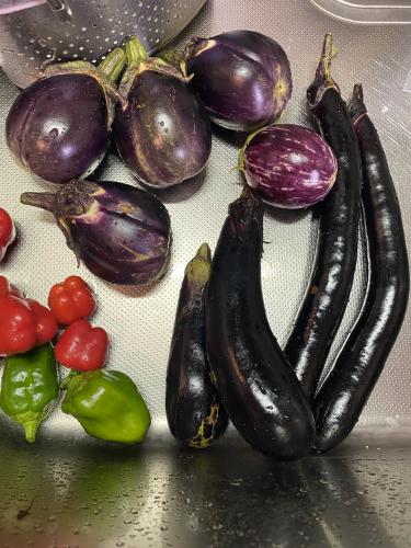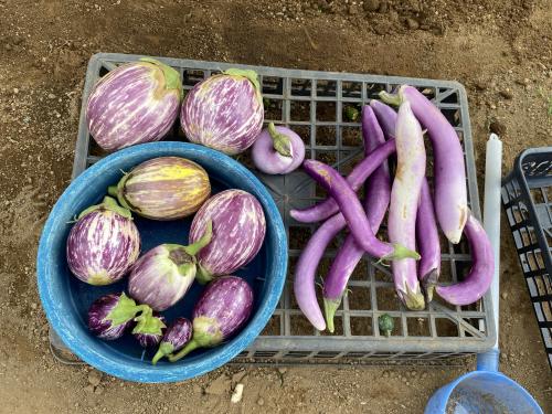 長茄子・フィレンツェはコンスタントに収穫中。 カリオペ・マー坊はボケ過ぎて、そのまま畑へ還元ばかり。。。 食べて上げれなくて、(。-人-。) ゴメンネ