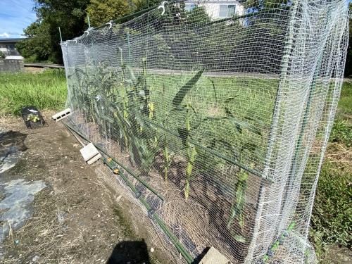 第四弾の白いおおものです。 今回は自家取りの種を使用した影響でしょうか? とても成長が未熟です。 まだアナグマが来訪されてないようです(困 捕獲器の餌をトウモロコシ4個に替えてみました。 トウモロコシの収穫適期が近いので捕獲を焦ってます(^。^); ネット天井も撤去してアナグマウエルカムにしました。