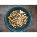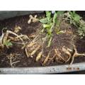 キクイモ、240日目、収穫しました。ひも状の芋でした。新芽が出ていました。