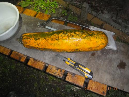 種取り目的で巨大成長させたズッキーニを解体して 種をゲットしました!