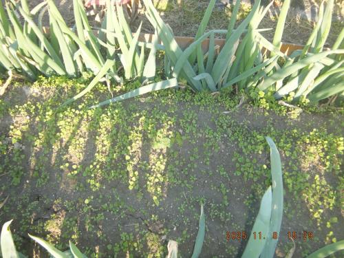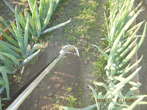 下仁田ネギ畝に細かい雑草が1面に生え出したため 除草 化成追肥 軽め土寄せを行いました!