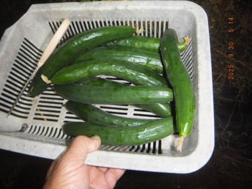 4期畝よりある程度まとまった数のキュウリを収穫しました→自販機販売用