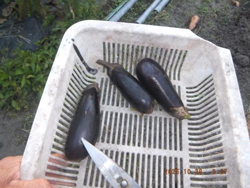 本日2回 ナスを収穫しました→自販機販売用 そろそろ畝の片付けをします!