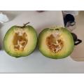 8/29に収穫した、パンナの第4玉です。 傷んできましたので、食べることにしました。 味は甘くて美味しいですが、まだ硬いメロンでした。 常温で追熟1ヶ月かけても柔らかくなりません。