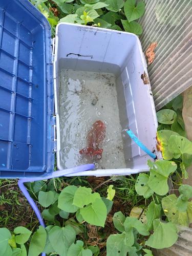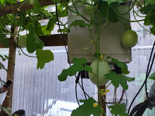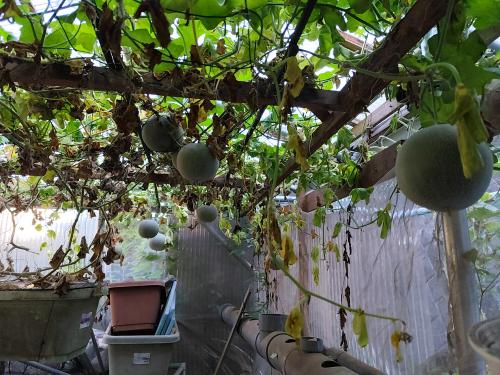 水耕栽培のパンナTFです。株に元気がありません。 そろそろ寿命かもしれません。 キングメルティーは、4玉くらいなっているのを確認しました。 液体肥料を補充しました。