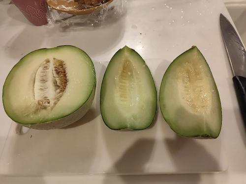水耕栽培したキングメルティーを食べました。 甘さが足りない気がしますが、十分食べれました。 このメロンは素晴らしいので来年は、メインに作りたいです。