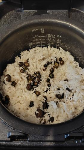 山芋の葉が枯れ始めた。 今年は山芋がちゃんと収穫できそうだ。 ムカゴをコツコツ冷凍庫に貯めていたので 去年は食べられなかったムカゴご飯をとうとう作ることができた。 ちょっとしかないので2合だけ炊いた。 お米は5キロで三千円ちょいのカリフォルニア米。 国産は高すぎて無理だわ。 備蓄米はもう売ってないのか〜