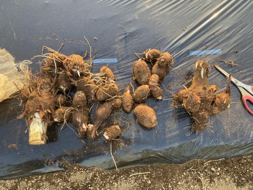 先発隊(子種芋)畝は3月下旬に植えた畝なので、2株試し掘りしてみた。 株が小さめなので期待してなかったが、中サイズが揃ってて丁度良い感じ。 毎年里芋は余らせて、翌年に廃棄ばかりなので、今年度は「全消費」目標! 後発隊の大株畝もあるので、こちらの先発隊畝は随時収穫していきます。