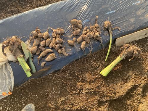 手前2株を試し掘り。使い勝手良さそうなサイズです。