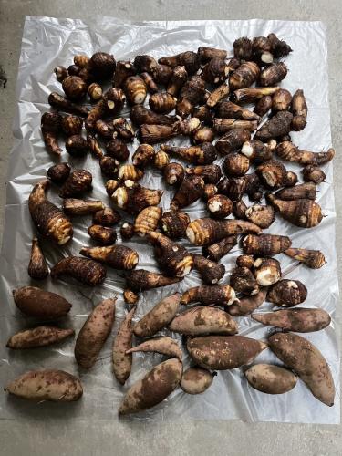 贈呈の里芋&サツマイモたち(乾燥中らしい)