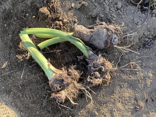 手前2株を試し掘り。使い勝手良さそうなサイズです。