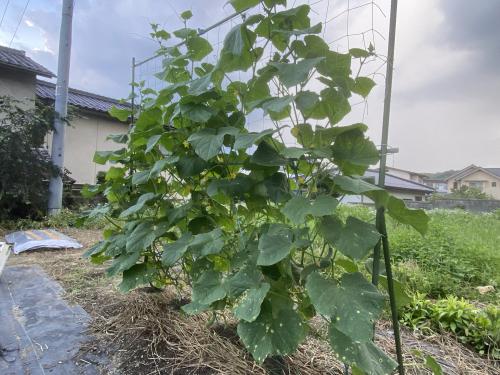 なるほど…秋になると台風が来たときに立体だと葉がぼろぼろになるので今年は地這いをしてみようと思ってやってみました。 なんだけど、うちの前ってコンクリで本来地這いでやるような土の上に藁敷いてっていうような環境じゃないんですよね…這わすほど場所もないし。 今から吊れるかな…