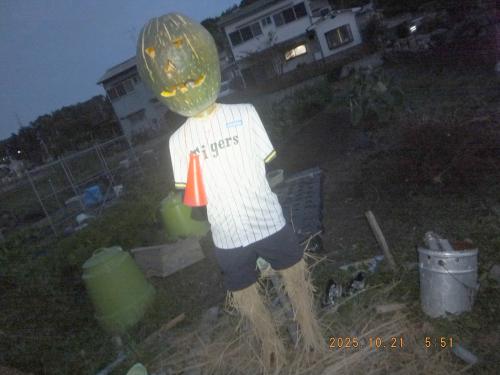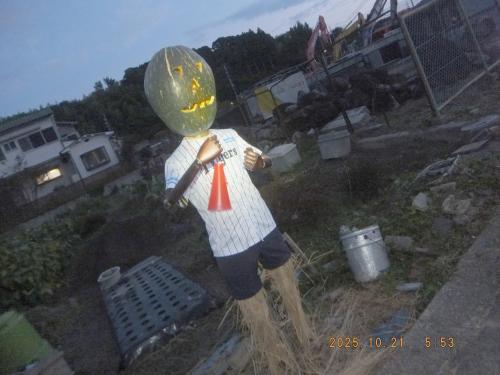 早朝ハロウィン案山子に腕を取り付けました! 通常作業が忙しいため、なかなか作業が進みません