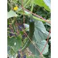 移植したせいもあり、成長イマイチだった「野良キュウリ」。 成長点をハムシに喰われ、もう成長が期待出来ないので撤収。 JA苗からは本日1本収穫。あと、3本は採れそうな感じ♪(#^.^#)