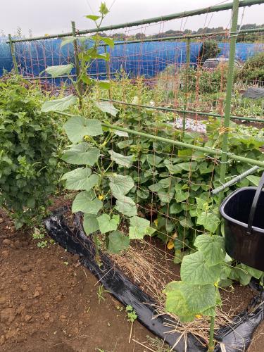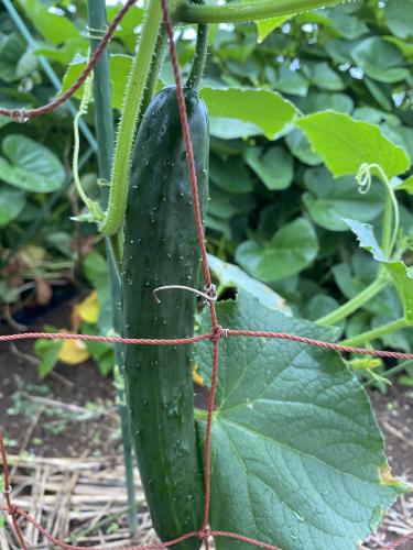その後、株元に敷き藁をして、脇芽かきや病気の葉を撤去などしたキュウリ。 また少し病気の葉を取り除こうとして見たら、1本立派なキュウリを発見♪ 涼しくなって来たので成長もゆっくりだけど、あと数本は採れたら嬉しいな。