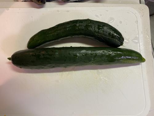 JA苗の秋キュウリと、近くに生えて来た野良Qです。 JA苗から2本収穫出来ました。寒くなるけど、あと何本採れるかな?