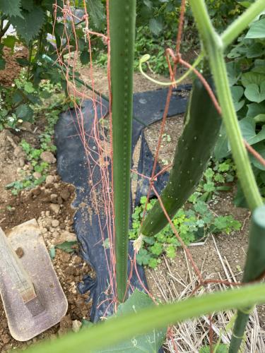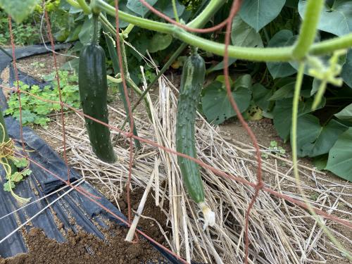 移植したせいもあり、成長イマイチだった「野良キュウリ」。 成長点をハムシに喰われ、もう成長が期待出来ないので撤収。 JA苗からは本日1本収穫。あと、3本は採れそうな感じ♪(#^.^#)
