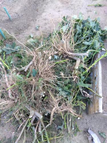 まだまだ収穫できますが、そろそろ片付けしないと後作のタマネギに影響するから。(茎太いし)