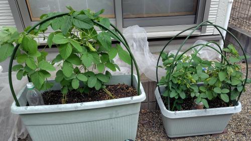 定植してからもう1ヶ月経った。 すっかり忘れていた。 だって雨がだーだー降るから水やりしないんだもん。 隣の山芋は蛾の幼虫憎さに 毎日ガン見してたけど、枝豆は忘れていた。 花が咲いたら追肥しようとおもっていたけど もう花は終わって実になってる。 化成肥料を埋めた。 4期枝豆は実がプリプリ。たくさんなってる。 来週 収穫しよう。