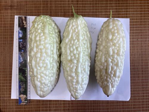 4日ほど収穫し損なっていたら、大きな白ゴーヤ3個ができていた。 左側833グラム、718グラム、646グラム。 今までで一番重い。まだ、黄色くなっていない。 少し涼しくなると黄色くならなくなるのか。