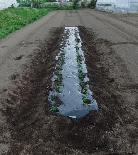家の畑はケラに食われるので 近所の方の畑に植えさせてもらいました。 51株 これで落花生は全部植え付けできました。