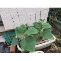 8/25に蒔いた秋キュウリ、本葉も出てきてきたので、大型プランターに植え付け。