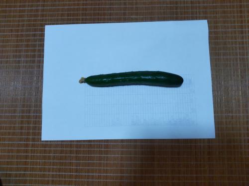 8/22に種を蒔き育てた秋キュウリが15センチほどになり、収穫。 苗を8本ほどプランターや地植えしたが、この苗しか大きくなっていない。急に寒くなり、あと育つかな。