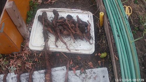 昨日作業の続き・・・ 自然薯全ての収穫しました 使える良型は合計10個でマズマズの状態 その他 小粒は来年用の種芋に転用します!