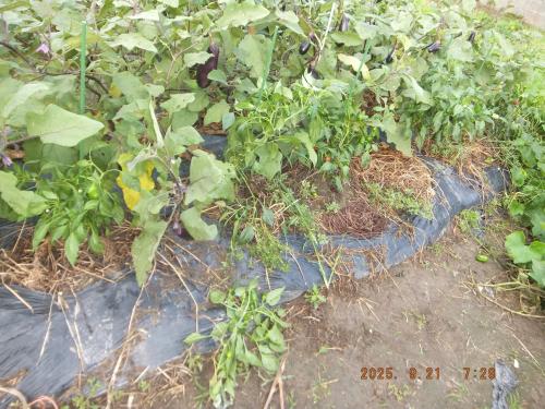 余り苗栽培畝で栽培しているダイソーピーマンを収穫しました→自宅用