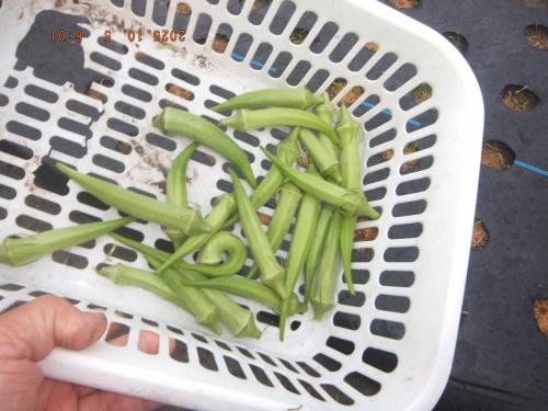 オクラを収穫しました→自販機販売用 今朝の収量は昨日より少し持ち直しました