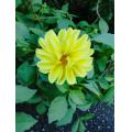 黄色の、色は薄めの花。薄めというより透明感のあるような色。造花っぽい風情がある。春に咲いたピンクの花もこうした感じだった。