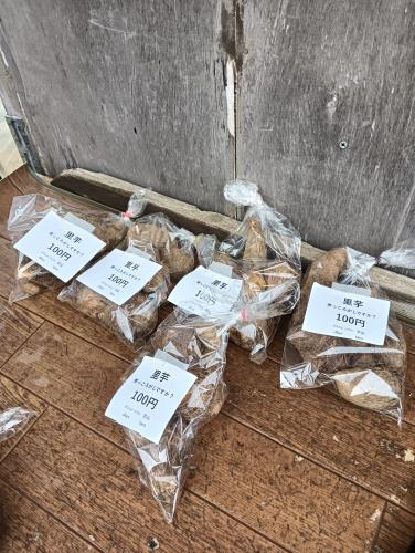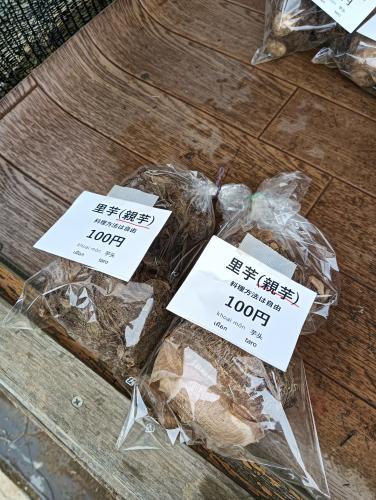 今日から里芋の販売開始 棚に並べたら速攻でどこかの奥さん登場して 里芋を購入 この奥さんが帰り際に情報を流したようで 次々と買いにくる 「ありがたや、、、」 今回は親芋を売ってみました どうなるかナ