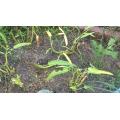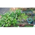 笹のような細い葉から 太い広い葉が展開してゆく。 この葉が美味しいのよ。 さつまいものツルみたいに伸びるらしい。 太い葉のツルを2本残して あとは先端を収穫した。