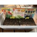 種々三種(どでかピーマン・ジャンボ甘とうがらし・黄辛こしょう)をセルポットに播種してコタツ育苗開始です。
