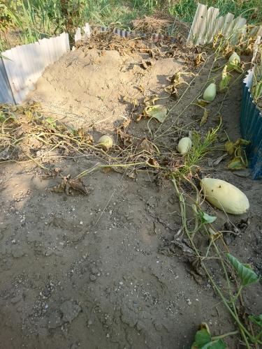 美味しそうだった大きな黄色い実は、 獣害にあった模様。 残ってる実は漬物にでもして収穫終了にします。