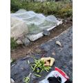 雨模様が続いて、3日ぶりに畑に行ったらオクラが巨大化していました。とりあえず全部収穫して、食べられる物を選別します。
