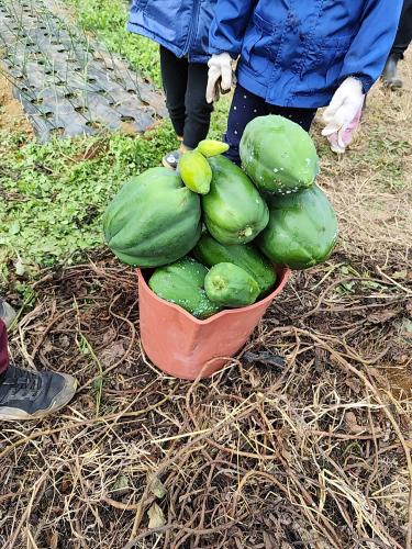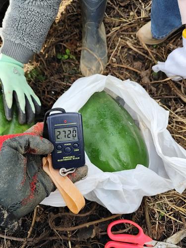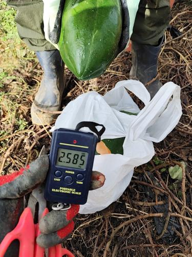 収穫したパパイヤの重量を測定しました。 2.7キロ超えの巨大パパイヤでした。