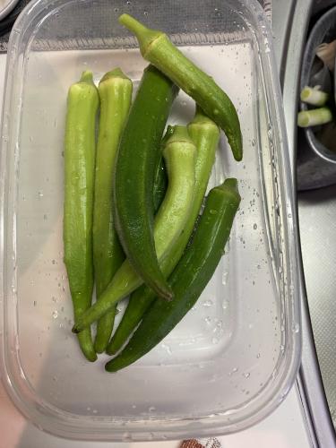 大きすぎた(廃棄)オクラ (。-人-。)