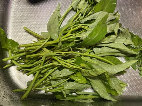 その後も何回か収穫出来た「エンサイ」ですが、さすがに終わります。 寒さでだいぶ傷んでましたが、中の方の新芽は大丈夫だったので収穫。 手間もかからず、4株で十分な「エンサイ」。来年度もやりたいと思う。