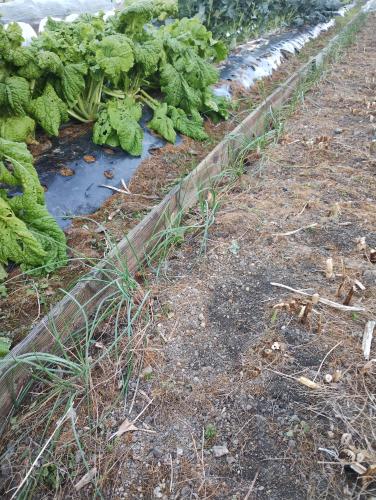 越のレッド(ラッキョウ)に追肥(発酵鶏糞+米糠+菜種油粕+有機石灰)しました。