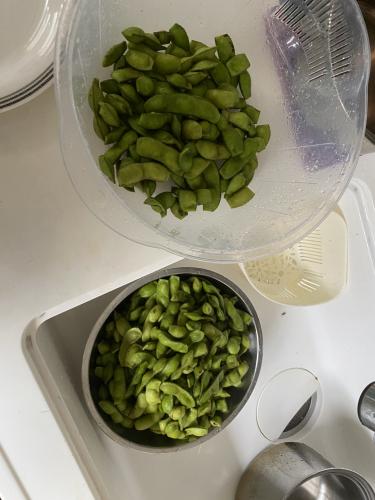 昨日430g摘み取り収穫して塩茹で試食してみると、 いい感じだったので今日は1770gを収穫。 やはり丹波黒の枝豆は最高に美味い!╰(*´︶`*)╯♡