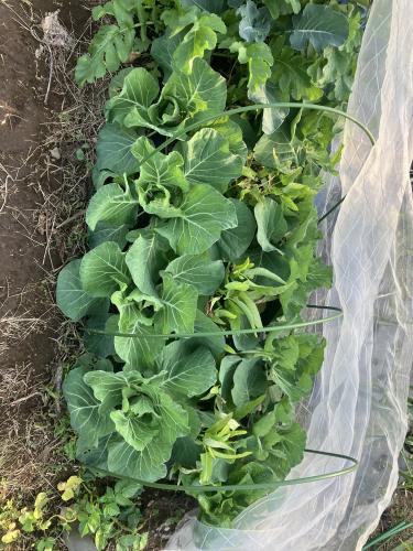 9月に両側にキャベツ苗を定植してからは、 徐々にエンサイを刈り取りながらキャベツ畝に転換してきました。 すっかり寒くなり、エンサイの生育も止まってきたので、最後の収穫とします。 挿木苗からこれほど長く楽したのは驚きでした。来年リピート確定です。