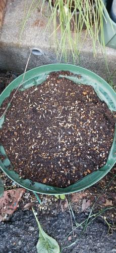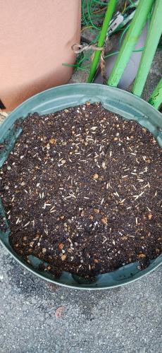 キュウリのあと腐葉土入れてほったらかしてたスリット鉢にも燕麦まいてみた