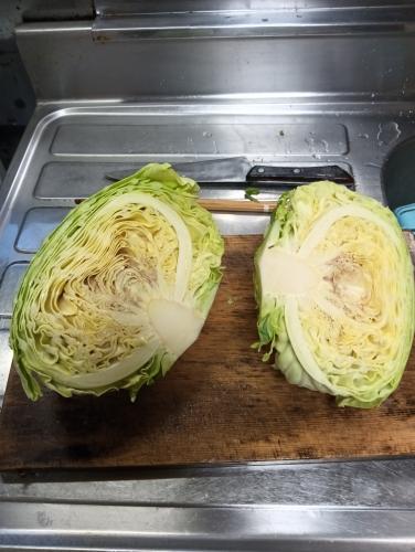 収穫しました 今日はこれで焼きそばを作ります ぱっかーんっと割ったら中心が茶色or紫、、なんでやねん! GoogleのGeminiに聞いたら「ふむふむ、なるほど」 アントシアニンで冬場のキャベツになるらし 勿論、食べられるようです