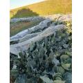 収穫が遅れています これから寒さが続くと鳥が来ませんか? 1月になるとムク鳥とヒヨ鳥の団体さんが ブロッコリーの葉っぱを食べに来るんです そんな訳で鳥がくる前にネット設置 ただ、長さが寸たらずで中途半端!!