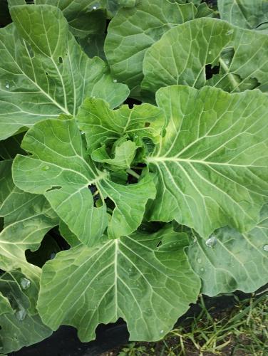 富士早生キャベツの傷んだ葉を摘葉しました。